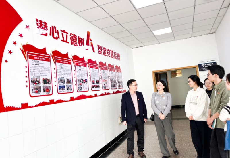 園區(qū)黨員代表在周主任和王院長的陪同下參觀了學(xué)校校史館,深入了解了商貿(mào)學(xué)院的創(chuàng)立背景、發(fā)展歷程、教育教學(xué)成果以及社會影響力等方面的內(nèi)容,校史館充分展現(xiàn)了學(xué)校的辦學(xué)理念、悠久的歷史積淀和豐富的文化底蘊。隨后參觀了信息與人工智能學(xué)院教學(xué)樓和教學(xué)設(shè)施,了解了學(xué)院的榮譽歷程、師資團(tuán)隊以及黨支部多種多樣的黨建活動。
